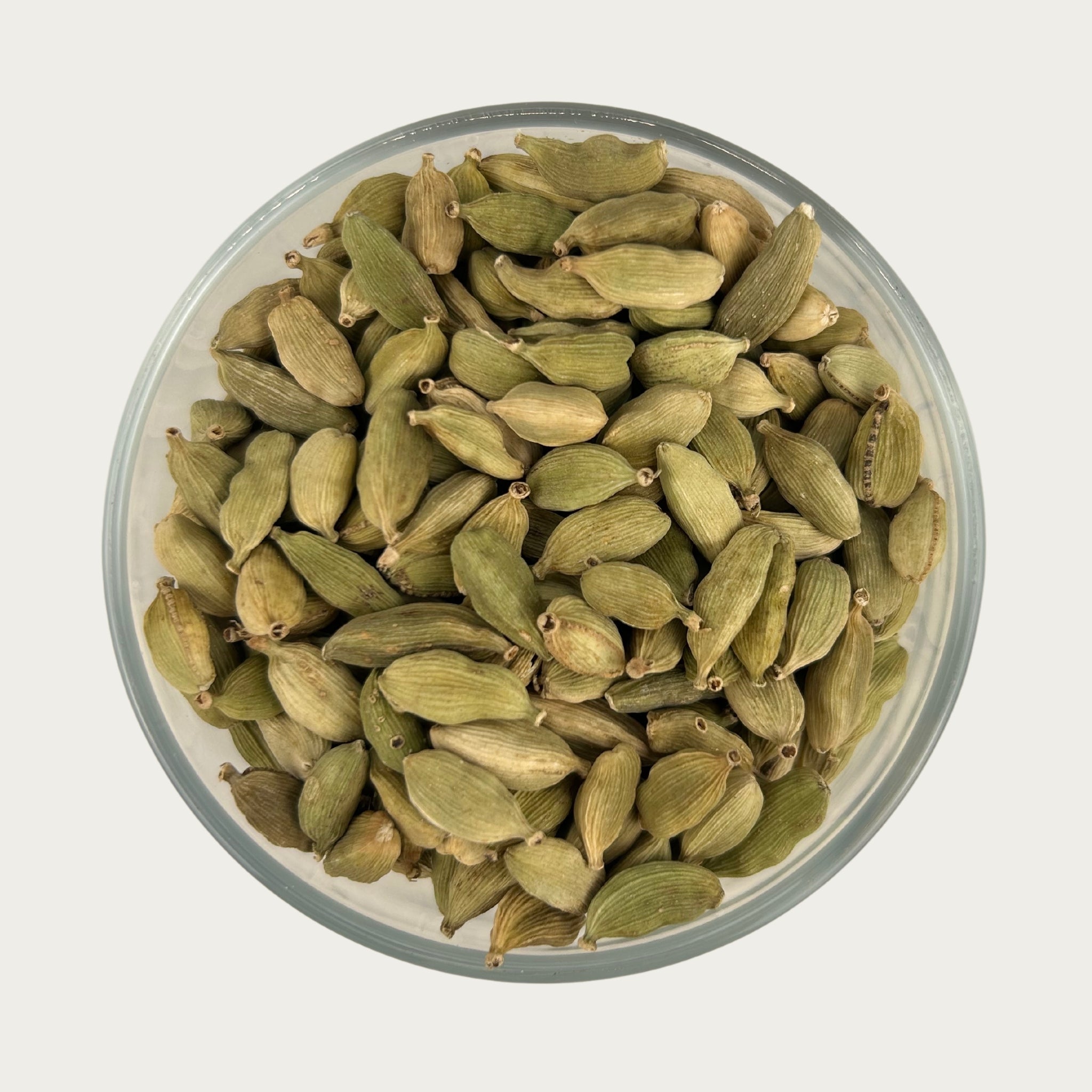 Aromatic, citrusy spice enclosed in green pods. Enhances sweet and savoury dishes, ideal for desserts, curries, and beverages. A versatile kitchen essential for a unique flavour boost, often used in Arabic coffee.