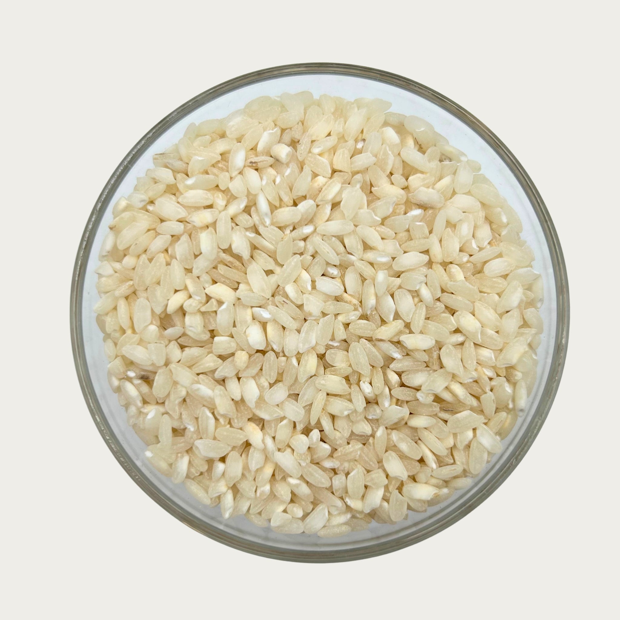 Arborio rice, is named after the town of Arborio in Italy. This famous short-grain rice when cooked, the rounded grains get firm, creamy and chewy compared to other grains, due to it's higher amylopectin starch content. Famously used to make risotto dishes and puddings. This grain is the first to be grown outside Italy, in Northern Greece.