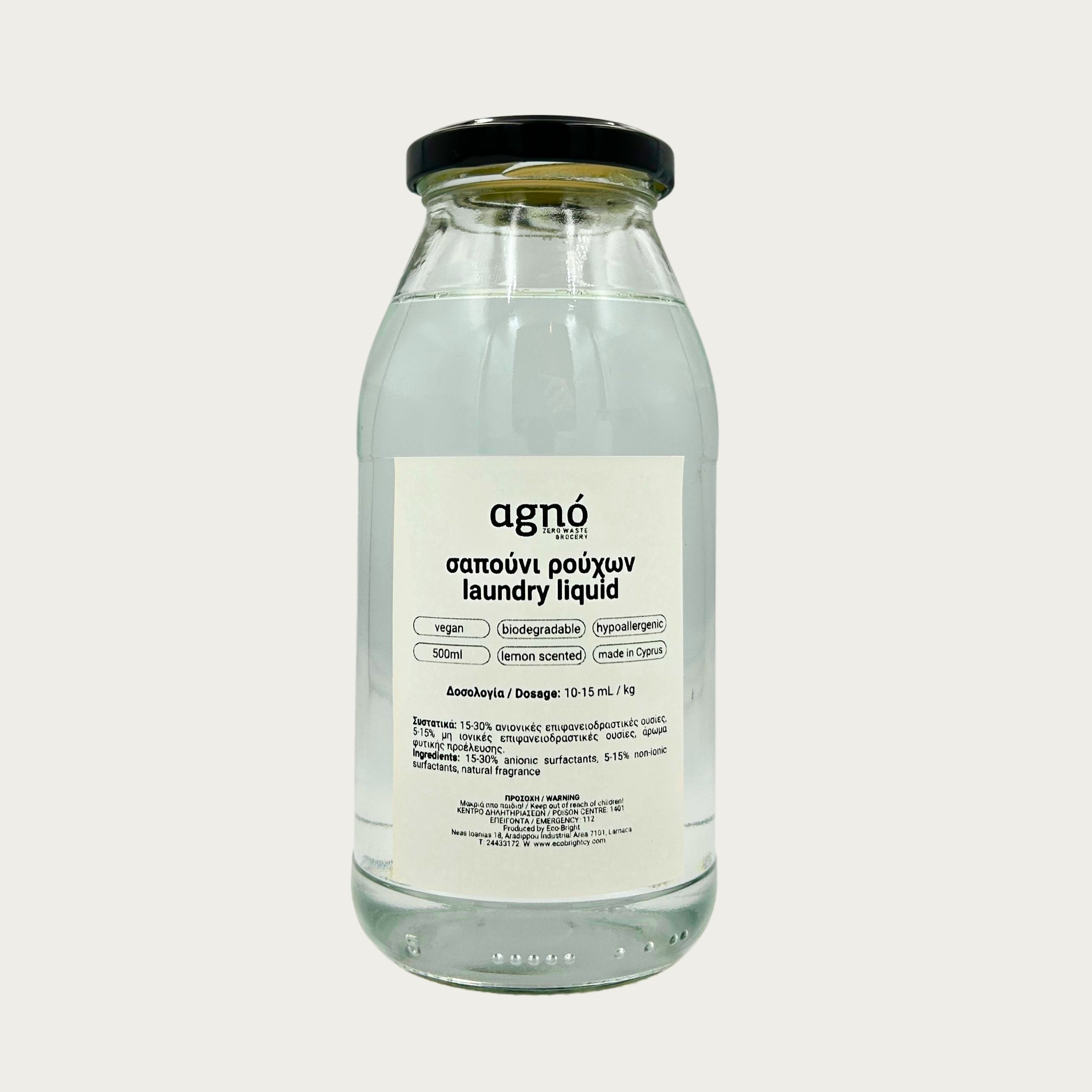 Allergy-friendly, earth-friendly. This EcoCert organic certified Laundry Liquid is biodegradable, vegan, hypoallergenic, and free from harsh chemicals. Perfect for washing machines and hand washing, it leaves clothes velvety and gently scented with natural lemon. Packed in a reusable glass bottle.
