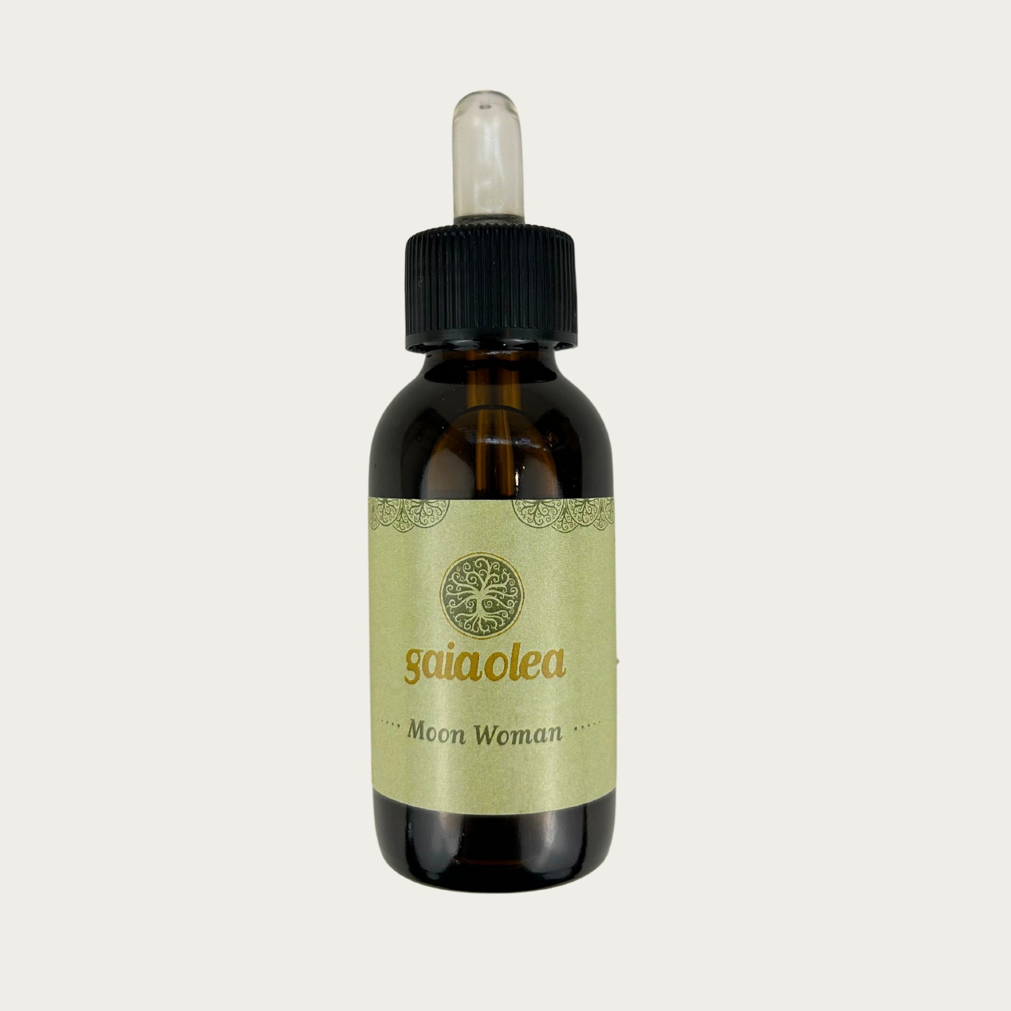 A combination of essential oils and botanical extracts in organic olive oil and safflower oil to help with the discomfort during moontime and soothe PMS symptoms.