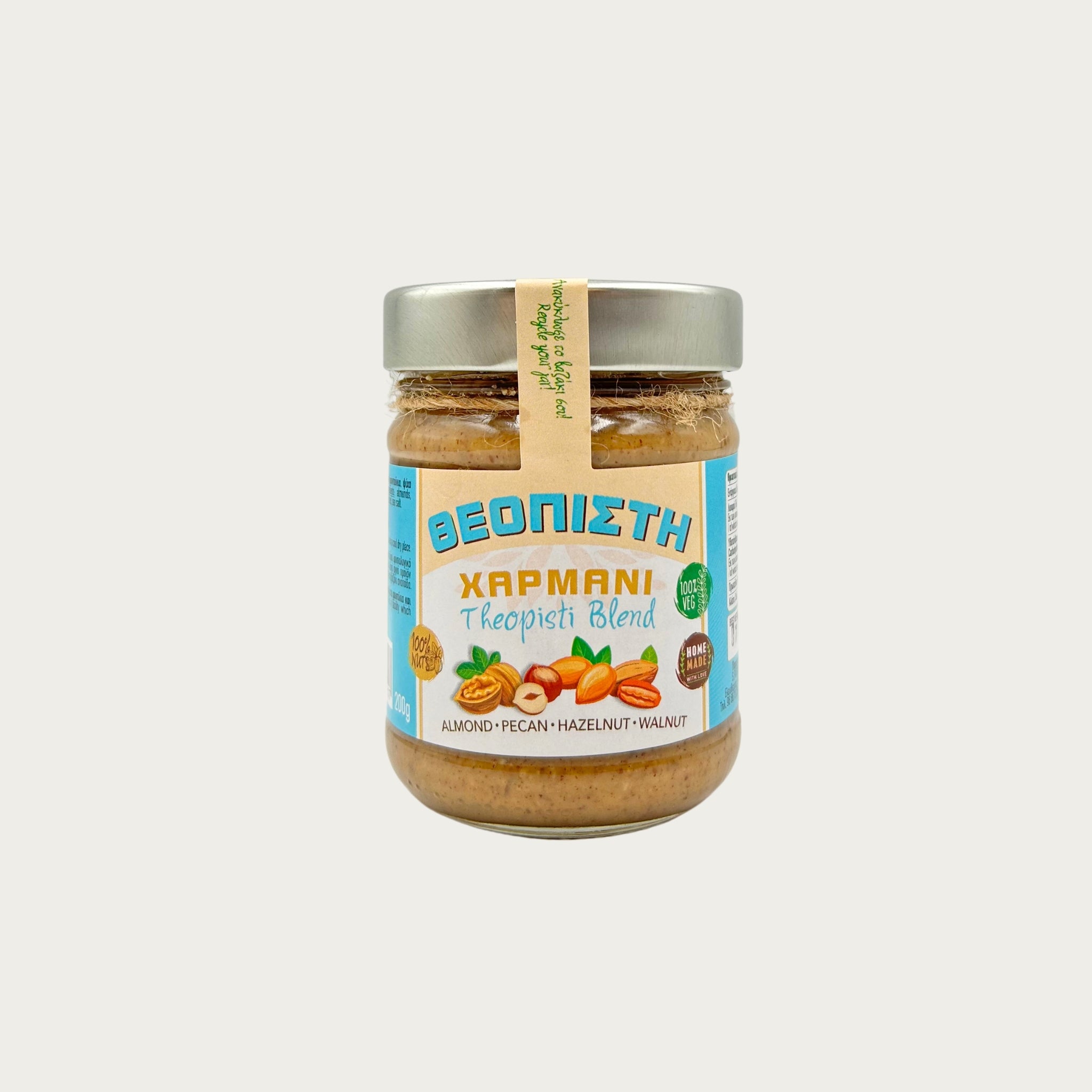 Theopisti's delicious nut butter blend is handmade in Askas, Nicosia, a smooth blend of almond, hazelnut, walnut & pecan! This peanut butter is smooth, has a rich flavour and comes in a nice reusable jar!