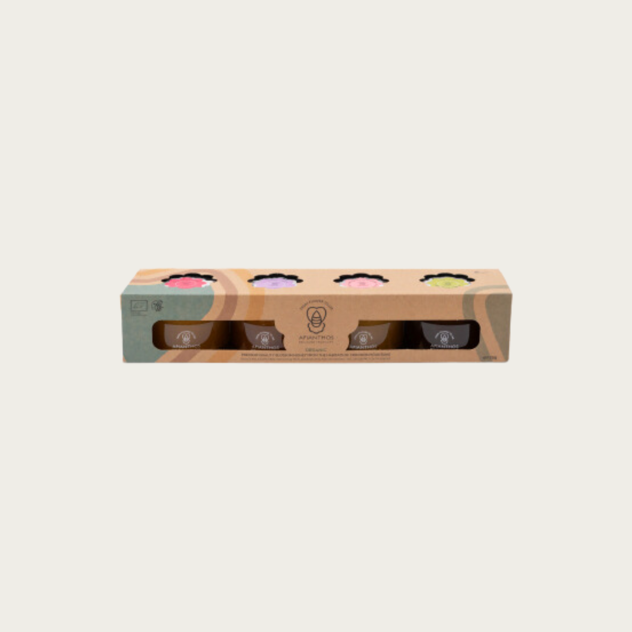Perfect for a gift, this box consists of four deliciously honey-packed jars: